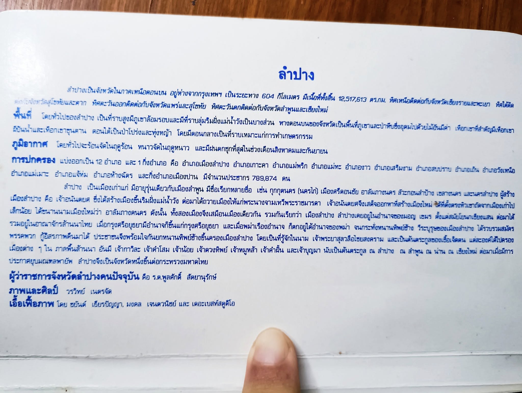 โปสการ์ดส่งเสริมการท่องเที่ยว ปสการ์ดส่งเสริมการท่องเที่ยว และ แผนที่สถานที่ท่องเที่ยวจังหวัดลำปาง รวม 24 แห่ง ได้แก่ เขื่อนกิ่วลม น้ำตกตาดหมอก วัดเจดีย์ซาว วัดพระธาตุเสด็จ วัดศรีชุม สวนรุกขชาติหนองกระทิง ภูเขาไฟจำป่าแดด วัดพระธาตุลำปางหลวง วัดพระธาตุจอมปิง ศาลเจ้าพ่อประตูผา ถ้ำผาไท ศูนย์ฝึกลูกช้าง วัดอักโขชัยคีรี น้ำตกน้ำดิบ บ้านหลุก ม่อนหินฟู ้ถ้ำพระสบาย ถ้ำน้ำผ่าผางาม เหมืองลิกไนต์ บ้านแม้วป่าตาหลวง น้ำตกวังแก้ว อุทยานแห่งชาติขุนตาน สวนป่าทุ่งเกวียน และ วนอุทยานน้ำตกแจ้ซ้อน จัดทำในสมัยผู้ว่าราชการ ร.ต.พูลศักดิ์ สัตยานุรักษ์ ดำรงตำแหน่ง 16 มิถุนายน พ.ศ.2534 – 30 กันยายน พ.ศ.2535 ภาพและศิลป์ : วรวิทย์ เนตรจัด เอื้อเฟื้อภาพ : ชยันต์ เธียรปัญญา , มงคล เจนตวนิชย์ และ เดอะเบสท์สตูดิโอ